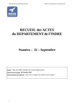 Recueil des Actes du Département de l'Indre n°32 septembre 2025 PDF - 70.38 MB