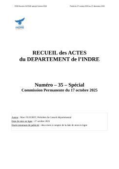 Recueil des Actes du Département de l'Indre n°35 spécial octobre 2025 PDF - 4.12 MB