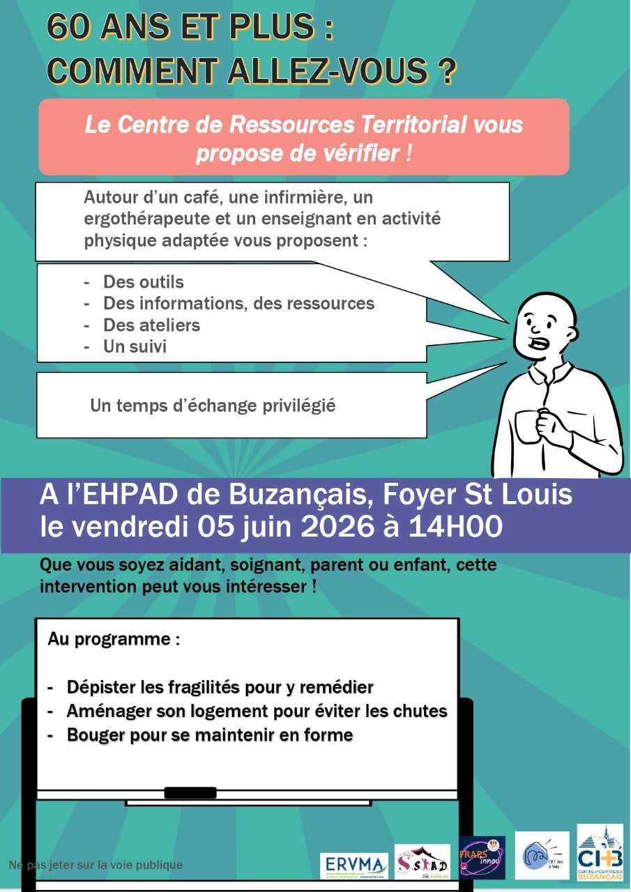 Que vous soyez aidant, soignant, parent ou enfant, le centre de ressource territorial vous invite à l'Ehpad vous invite le 5 juin à Buzançais. Seniors, cette intervention peut vous intéresser !