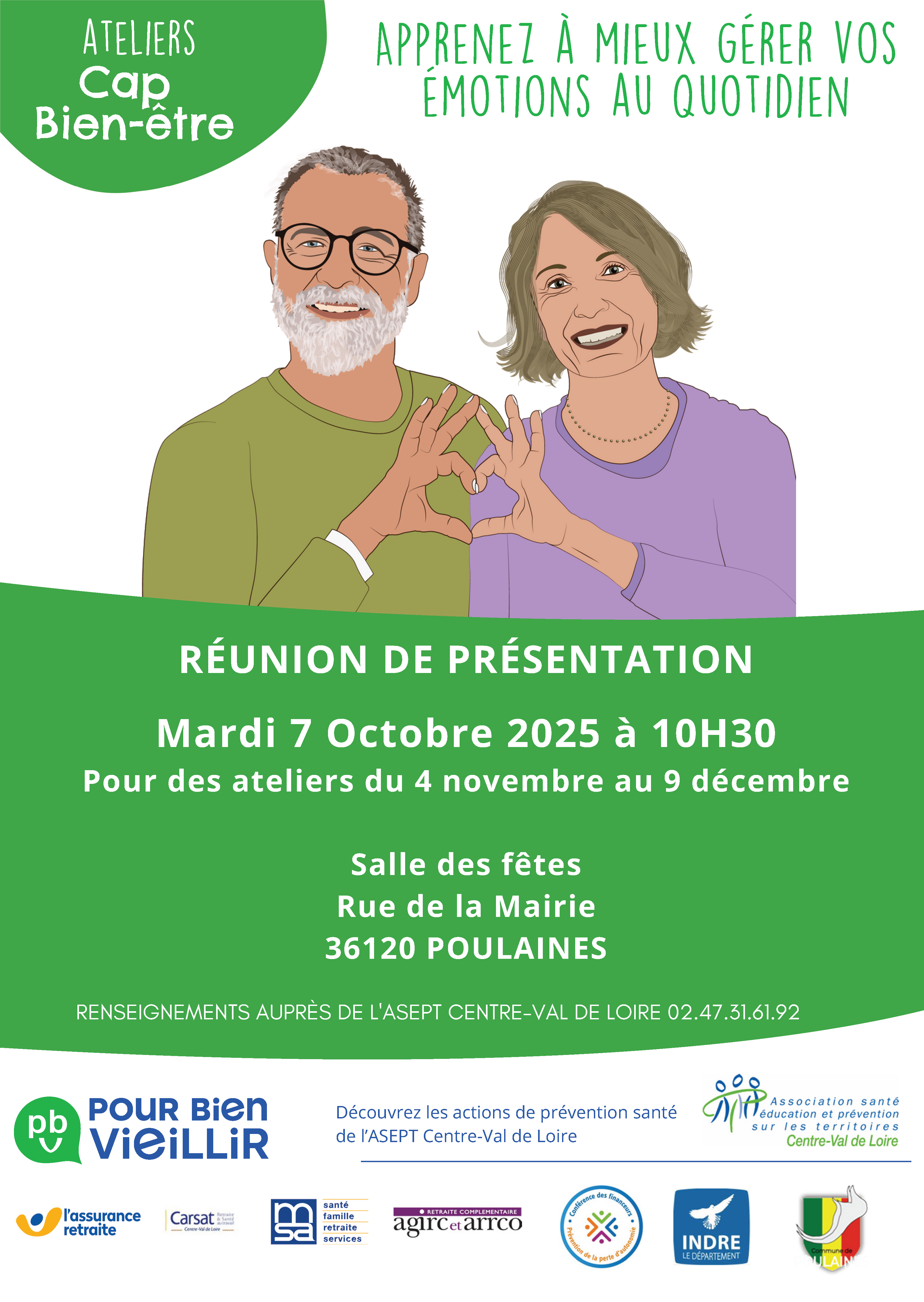 Réunion de présentation mardi 7 octobre 2025 à 10h30 à la salle des fêtes de Poulaines.Renseignements auprès de l'Asept Centre-Val de Loire au 02 54 31 61 92