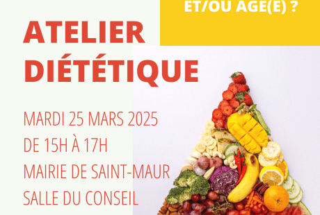 Atelier diététique animé par une diététicienne mardi 25 mars de 15h à 17h, à la mairie de Saint-Maur (salle du conseil).