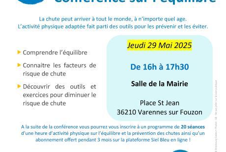 À la suite de la conférence vous pourrez vous inscrire à un programme de 20 séances d’une heure d’activité physique sur l’équilibre et la prévention des chutes ainsi qu’un abonnement offert pendant 3 mois sur la plateforme Siel Bleu en ligne.
