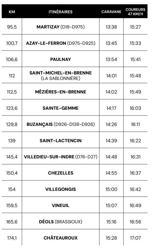L'arrivée à Châteauroux s'annonce palpitante. Les derniers kilomètres seront probablement marqués par une lutte intense entre les sprinteurs. Les équipes devront orchestrer leur stratégie pour mettre leurs leaders dans la meilleure position possible pour le sprint final.