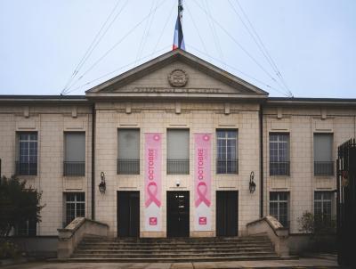 Le Département affiche également son soutien à la lutte contre le cancer du sein sur la façade de l'Hôtel du Département.