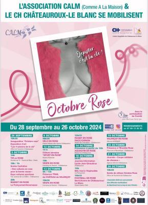 L’Association CALM (Comme à la maison) et le Centre Hospitalier de Châteauroux Le Blanc se mobilisent contre le cancer et propose de nombreuses actions pour l’édition 2024 d’Octobre Rose. cliquer sur l'image pour agrandir le programme