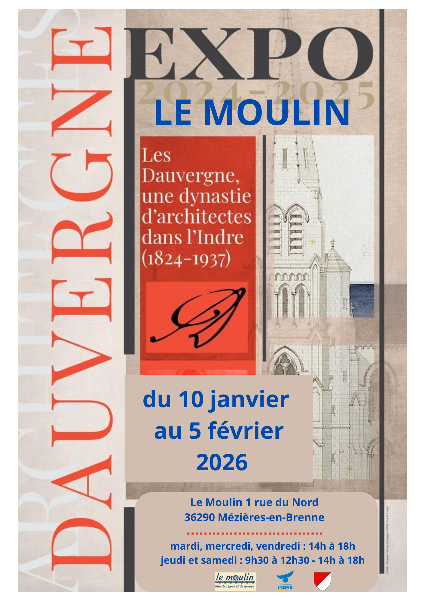 2024 a coïncidé avec l’année de la célébration du bicentenaire de la naissance d’Alfred Dauvergne, architecte départemental qui oeuvra avec ses deux fils Henry et Louis dans la quasi totalité du département de l’Indre. À travers des projets tant publics que privés, depuis l’église Saint-André de Châteauroux jusqu’au château de Lancosme à Vendœuvres, en passant par la sous-préfecture du Blanc et le palais de justice de La Châtre, ce sont plus de 1 300 bâtiments indriens qui portent la signature des Dauvergne.