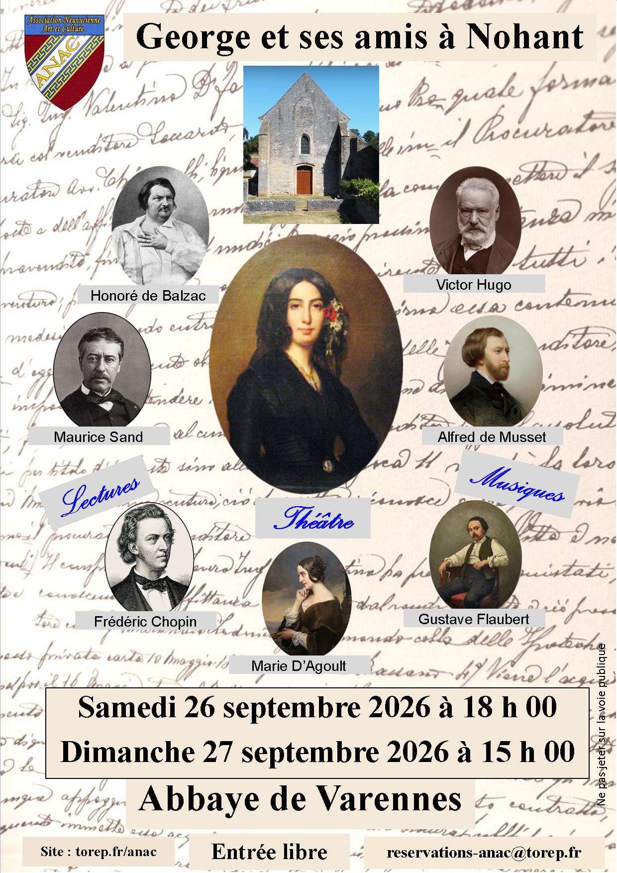 Lecture des correspondances de George Sand avec ses amis puis c'est leur rencontre chez notre célèbre écrivaine que l'ANAC a imaginé. Et à Nohant, il y a de la musique avec Chopin mais aussi de la musique et des danses berrichonnes.