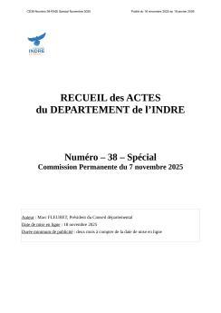 Recueil des Actes du Département de l'Indre n°38 spécial novembre 2025 PDF - 9.01 Mo