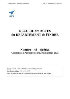 Recueil des Actes du Département de l'Indre n°43 spécial novembre 2025 PDF - 11.14 Mo