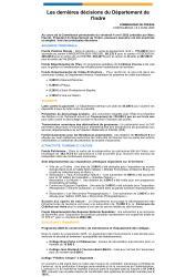 Presse Les dernières décisions du Département de l'Indre de la Commission permanente du 4 avril 2025 PDF - 102.65 Ko Télécharger Les dernières décisions du Département de l'Indre de la Commission permanente du 4 avril 2025