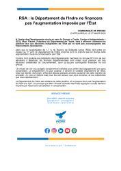 Presse RSA : le Département de l'Indre ne financera pas l'augmentation imposée par l'État PDF - 130.15 Ko Télécharger RSA : le Département de l'Indre ne financera pas l'augmentation imposée par l'État
